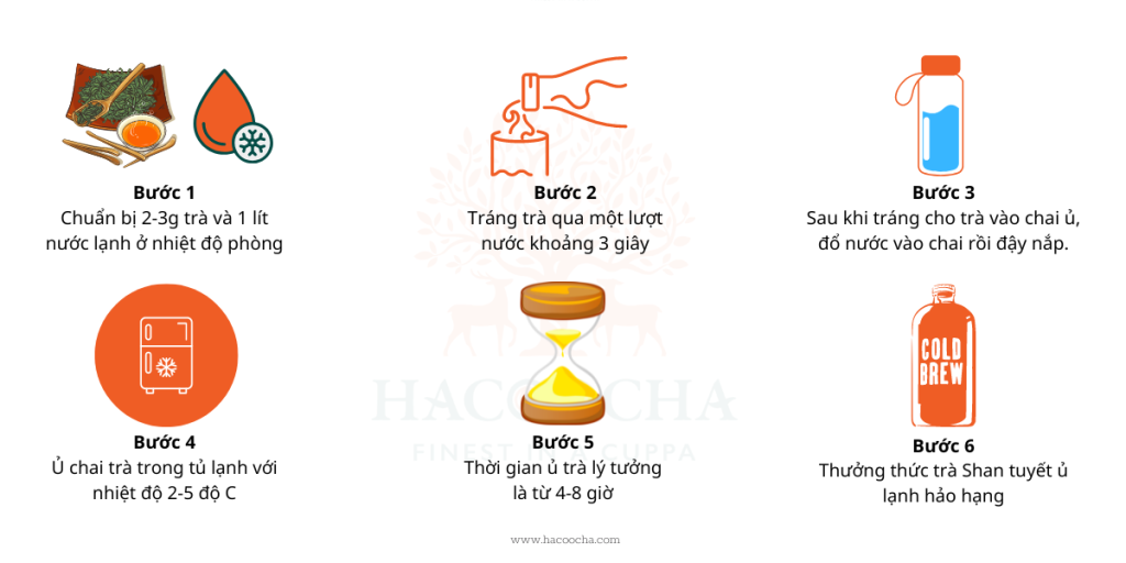 Để có những chai trà ủ lạnh thơm ngon chuẩn vị, ta có thể tham khảo những bước pha trà như sau: